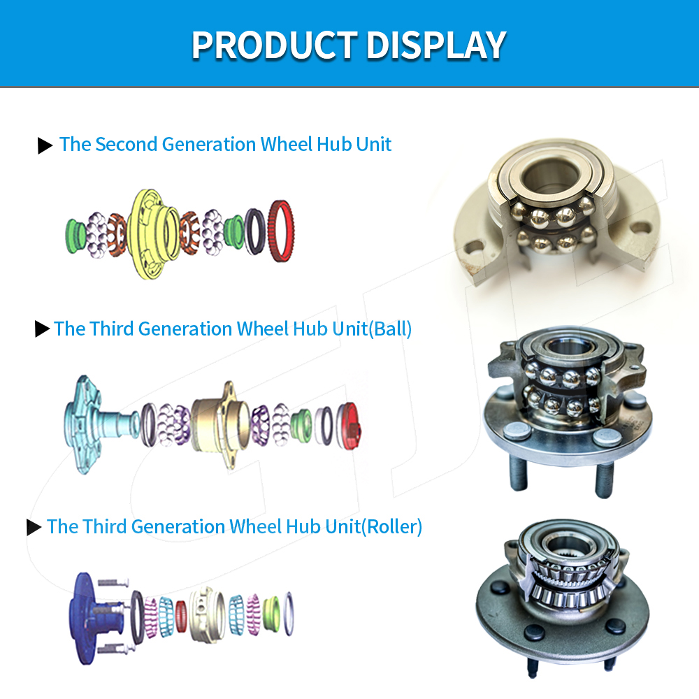 מיסבי רכזת הגלגלים שלנו נועדו להבטיח סיבוב גלגלים חלק, בקרת רכב יציבה ועמידות לאורך זמן. המוצרים שלנו מיוצרים עם GCR15 הנושאים פלדה, 55# פלדה אוגן, PA66+GF25, ופלדת אל חלד+חותמות NBR , המוצרים שלנו מספקים חוזק מעולה, עמידות בפני קורוזיה ואמינות.